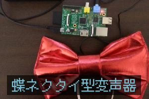 蝶ネクタイ型変声機は、ビックリドッキリメカで制作した、その名の通りマイクに音声を入力すると変換された音声が出力されるデバイスです。ラズベリーパイにオーディオピンのマイクとスピーカーを接続し、音声の入出力を行います。現在、音声を入力すると高い声が出力される仕様となっています。このデバイスによって、普段話しかけられないあの子に話しかけたり正体を隠したまま事件を解決したりすることができるでしょう。